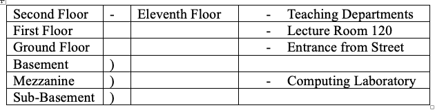 The vertical layout of Claremont Tower is as follows: